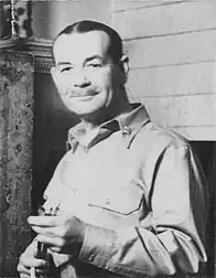 Later that year, he was commissioned as a Lieutenant Commander in the Naval Reserve, working for the Office of Public Affairs. As part of his first assignment in the North Atlantic, he witnessed the sinking of the USS Reuben James. He then went to the Pacific, where he saw the aftermath of the attack on Pearl Harbor and gathered eyewitness accounts. He also observed troops training for the invasion of Midway and visited the islands after their recapture. His third assignment sent him to the South East Asia Command in Ceylon (Sri Lanka). After the war, he painted two murals (now lost) for the Naval Academy, depicting the attack on Pearl Harbor and the Battle of Midway.[4] He left the Navy in 1947, with the rank of Commander and returned home, retiring to Connecticut, where he died in 1950, at the age of sixty.