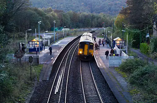 Standard waiting shelters are provided on both platforms and train running information is offered via CIS displays, automated announcements, a pay phone and timetable posters. Step-free access is available for westbound trains only (platform 1), as the ramps to the bridge linking the platforms are steep and not suitable for wheelchairs.[6]