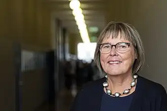 Guðrún has also successfully collaborated in the field of disabled people and sat as the University of Iceland's representative on various governmental committees. Among other things, she was a member of a committee under the auspices of the Office of the Prime Minister. Its purpose was to investigate children's living conditions at the Kópavogshæli, institute for people with intellectual disability.[15][16]