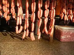 Guagua longganisa, also known as Candaba longganisa, is a Filipino pork sausage originating from the towns of Guagua and Candaba, Pampanga. It is a type of de recado longganisa characterized by its salty and sour taste because of its heavier use of vinegar in comparison to other Filipino sausages.[1][2][3]