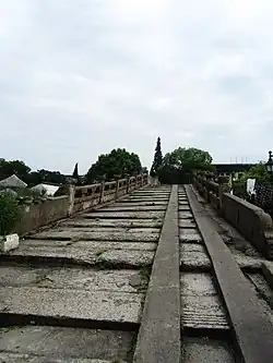 The Guangning Bridge (simplified Chinese: 广宁桥; traditional Chinese: 廣寧橋; pinyin: Guǎngníng Qiáo) is a historic stone arch bridge over the Eastern Zhejiang Canal in Yuecheng District of Shaoxing, Zhejiang, China. The bridge measures 60 metres (200 ft) long, 5 metres (16 ft) wide, and approximately 5.8 metres (19 ft) high.[1]