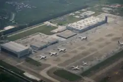 The old Baiyun Airport opened in 1932.[3] Due to the expansion of Guangzhou, the airport could not expand to meet passengers needs as buildings and mountains surrounded the airport. On 5 August 2004, the new Baiyun Airport opened and the old airport was closed.