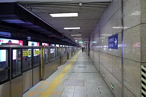 Platform of Gucheng station in 2010, before the safety door was installed -