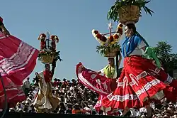 Its origins and traditions developed as earth-based, religious celebrations related to the worship of corn (maize) and the corn god.[3] The word Guelaguetza comes from the Zapotec language and is usually interpreted as the "reciprocal exchanges of gifts and services." This is in keeping with the importance in indigenous cultures of sharing, reciprocity, and extended community.[2] Like many indigenous traditions in Mexico, the festival adapted to and absorbed Christian traditions in the centuries of cultural interchange after Spanish colonization.
