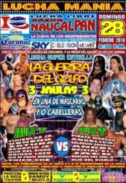 Guerra del Golfo (2010) (Spanish for "Gulf War") was an annual professional wrestling major event produced by Mexican professional wrestling promotion International Wrestling Revolution Group (IWRG), which took place on February 28, 2010, in Arena Naucalpan, Naucalpan, State of Mexico, Mexico. It was the fourth time IWRG had held a Guerra del Golfo event since 2002, making it an annual event from 2005 and forward. The annual Guerra del Golfo main event consists of three matches in total, with two "qualifying matches", multi-man steel cage matches where the last person left in the cage advances to the main event of the night. The two losers would then be forced to wrestle inside the steel cage, with the loser of that match being forced to either take off their wrestling mask or have their hair shaved off under Lucha de Apuestas, or "Bet match" rules, if they are unmasked.