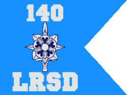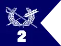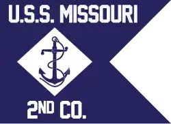 Navy ships and squadrons may display a unit guidon while parading ashore. It measures 20+18 by 27+34 inches (51 cm × 70 cm) with a 10 inches (25 cm) swallowtail, is blue with white text, and depicts a fouled anchor within a diamond (identical to the insignia of the Naval Infantry Flag).[16] Prior to World War II, a red flag was used for naval artillery units. Companies of the Brigade of Midshipmen attending the United States Naval Academy carry a gold guidon with blue numerals.[17][18] Officer Candidate School Companies carry blue guidons with white lettering and a white bulldog.[19]