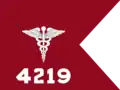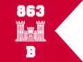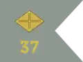 Separate numbered TO&E companies have guidons with their numerical designation under the branch insignia, e.g. the guidon of the 380th Quartermaster Company is buff with the insignia of the Quartermaster Corps over the numerals "380" in ultramarine blue, these being the named colors of the branch. Headquarters companies of groups, brigades, divisions and corps have guidons of a design corresponding to that of their Organizational Flag, e.g. the guidon of a headquarters battery of a Field Artillery Brigade or Fires Brigade would be vertically divided, scarlet and yellow, with the brigade's shoulder sleeve insignia centered.[5][6][7]