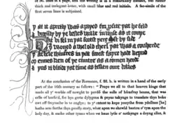 Facsimile of the first seven lines of the 14th century Middle English translation The Romance of William of Palerne