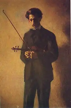 He obtained a scholarship from the Colombian government to study in Paris. In 1907, at the Schola Cantorum, he commenced violin studies with Armand Parent, and composition with Vincent d'Indy, alongside fellow students Erik Satie and Joaquín Turina. He later took violin lessons in Brussels with César Thomson and Émile Chaumont. In 1909, his Violin Sonata No. 1 was played at a concert of the Société Nationale de Musique in Paris, by Gabriel Vuillaume and Ricardo Viñes. As a result of his Parisian studies, there is a marked French influence in the works he wrote prior to 1930.[1] In Paris, he met the pianist Lucía Gutiérrez. They married in 1910, and she was often soloist in his works. She died in 1925.