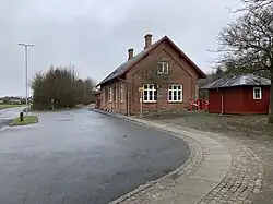 Like the other stations on the Esbjerg–Struer railway line, the still existing station building from 1874 was built to designs by the Danish architect Niels Peder Christian Holsøe (1826–1895), known for the numerous railway stations he designed across Denmark in his capacity of head architect of the Danish State Railways.[5]