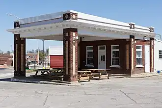 The Gulf Oil Company Service Station is a former automotive service station at Main and South Third Streets in Paragould, Arkansas. Built in 1926, it is a single-story brick building, with a canopied area similar to a porte-cochere supported by brick columns. The building has stylistic elements giving it a vague Mediterranean appearance, including an entablature with egg-and-dart molding beneath a metal cornice and parapet. It is divided functionally into four rooms: an office, two restrooms, and a tool storage area. The building was used as a service station until 1969.[2]