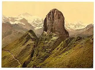 The Gumihorn is a mountain of the Bernese Alps, the highest point of the Schynige Platte ridge, located at the western end of the Schwarzhorn group. It forms a limestone tower, overlooking the valley of the Lütschine. At 2,099 metres (6,886 ft), it is the highest summit lying west of the Loucherhorn.