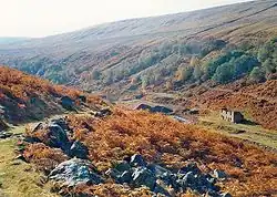 The site of intensive lead mining in the 18th and 19th centuries, the valley still contains much evidence of its industrial past. Streams were dammed, and the water released as a torrent to scour soil off the surface and reveal lead ore (galena) seams. The resultant scars are known as hushes (perhaps an onomatopoeia of the sound that the water made). Bunton, Friarfold, and Gorton hushes are on the east side of the valley, with the North Hush being on the opposite side. Large areas of the upper valley are covered in spoil heaps from the mining activity, and a number of buildings remain. Many of the buildings and mine structures are scheduled ancient monuments.[1]