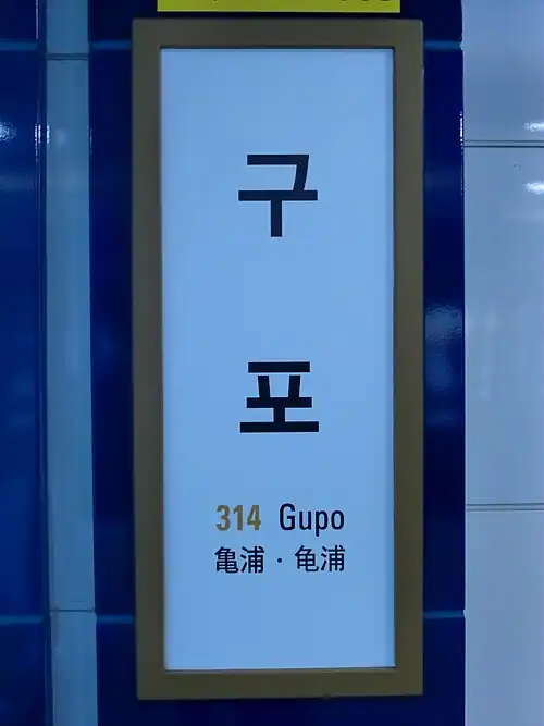 Gupo Station (Korean: 구포역; Hanja: 龜浦驛) is a station of the Busan Metro Line 3 in Gupo-dong, Buk District, Busan, South Korea.