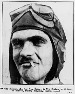 - ^ Had Finished His Ham and Eggs So Flew the Tasman: Unknown at Midnight; World Hero a Few Hours Later: Would Not Do it Again for £50,000 Says Hero of N.Z. Flight: Guy Menzies is a Great 'Guy', The (Sydney) Daily Pictorial, (Thursday, 8 January 1931), p. 3.]
