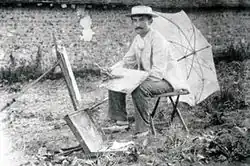 On September 12, 1888, Rose enrolled at the Académie Julian in Paris and studied with Benjamin-Constant, Jules Lefebvre, Lucien Doucet, and Jean-Paul Laurens while in Paris. In 1888–89, he won a scholarship at the Académie Delacluse and contributed religious and figural studies as well as landscapes to the Paris Salons in 1890, 1891, 1894, 1900, and 1909.[4] He met fellow student brothers Frank Vincent DuMond and Frederick Melville DuMond at the Académie Julian – Frank Vincent DuMond and Guy Rose were to remain lifelong friends.