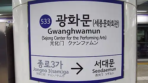 - ^ "Search: Gwanghwamun". Seoul Metro. Retrieved 14 July 2019.