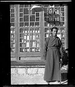 Around 1928,[3][4] Gyalo Thondup was born in the village of Taktser,[5] Amdo (Ping'an District, Qinghai province). He was the third child of Choekyong Tsering and Diki Tsering.[6] The second of five sons, he was their only male child who did not become a monk; his father had intended for him to become a farmer and carry on the family estate.[6]