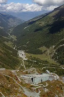 Hotel du Barrage and Dixence valley below the La Grande Dixence dam