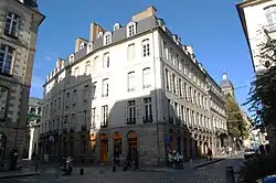 The building was designated as a historic monument in 1947,[1] and underwent a complete exterior restoration spread over three decades, while the apartments give way to offices. It has been wholly owned by the state since 1982 and houses, in refurbished and restored rooms, the Direction régionale des affaires culturelles (DRAC, Regional Directorate of Cultural Affairs of Brittany) and in service quarters, the service territorial de l’architecture et du patrimoine (Territorial Service of architecture and heritage of Ille-et-Vilaine).