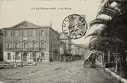 In October 1893, the mayor, Saturnin Fabre, welcomed the president of France, Sadi Carnot, to the wharf outside the town hall. Carnot was on a visit to launch the French battleship Jauréguiberry at a shipyard owned by Société Nouvelle des Forges et Chantiers de la Méditerranée in the town.[3] The old town hall, along with the rest of the port area and much of the shipyard area, was destroyed by allied bombing on 17 August 1944 during Operation Dragoon, part of the Second World War.[4][5][6]