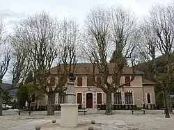 Following the French Revolution, the town council initially met at the home of the mayor at the time. This arrangement continued until the mid-19th century, when the council decided to commission a combined town hall and school. The site they selected was on the north side of the new town square (now Place de la Liberté). The new building was designed in the neoclassical style and built in brick with a stucco finish. A bust of Marianne was installed in front of the town hall and the square, town hall and school were officially opened to the public on 14 July 1880.[1][2]