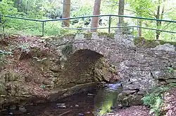 - ^ Löbersbach and Roter Bach both flow into the Eisenacher Mühlgraben (left side arm, 2,9 km), however, the Löbersbach is obviously not subordinate to its water body identification number (41694), since the sub-catchment area of the Hörsel between the Michelsbach estuary and the former Spicke reservoir - where the Mühlgraben flows into it - is only 11.6 km2, which clearly exceeds the sum of both stream catchment areas. Moreover, the Hörsel's sub-catchment area between the Nesse and Michelsbach estuary is 14.8 km2, which would not be possible on the right side of the Mühlgraben, due to the direction of the Michelsbach, so it must contain the Löbersbach. In former times, the Löbersbach and the Marienbach ran separately from each other; a branch canal that existed at times was called the "Suez Canal".