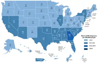 - ^ "HIV and African Americans | Race/Ethnicity | HIV by Group | HIV/AIDS | CDC". www.cdc.gov. March 19, 2019. Archived from the original on August 8, 2019. Retrieved July 10, 2019.