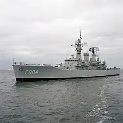 The HNLMS Tjerk Hiddes in its original configuration with the Royal Netherlands Navy
