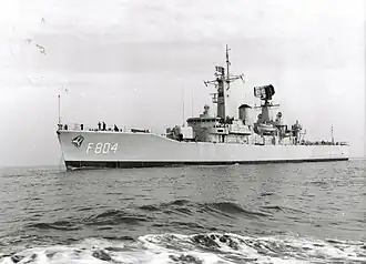 HNLMS Tjerk Hiddes (F804) (Dutch: Hr.Ms. Tjerk Hiddes) was a frigate of the Van Speijk class. The ship was in service with the Royal Netherlands Navy from 1967 to 1986. The ship's radio call sign was "PAVC".[2] She was sold to the Indonesian Navy where the ship was renamed KRI Ahmad Yani (351).