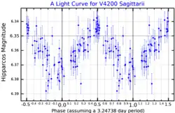 A light curve for V4200 Sagittarii, plotted from Hipparcos data[1]