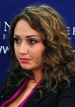 Referring to the Assad regime during a speech in Lebanon, she said, "This regime under no terms could be considered as a protector of minority rights or of Christians." She has criticized the administration of President Barack Obama for not doing more to help Middle Eastern minorities such as Syrian Christians, secular Syrians, and Kurds.[2] She has also criticized Christian religious leaders for failing to speak out: "None of the Christian figures or leaders asked for us when we were being tortured or beaten in prisons."[4]