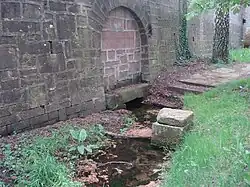 The Hafenlohrquelle (source of the Hafenlohr) is in the village of Rothenbuch, next to the wall of Rothenbuch Castle (Schloss Rothenbuch). It was set in sandstone when the road ST2317 was broadened.