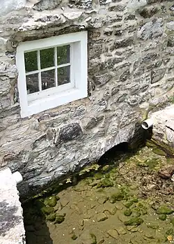 The Hager House is built in a German Colonial style with a single chimney in the middle of the house. The central chimney allowed more heat to fill the home, rather than escape through the outside walls like an English Colonial. In the summer, if the kitchen fireplace radiated too much heat, families used the Summer Kitchen located in the much cooler basement. The house rests atop two freshwater springs that naturally run 40 degrees Fahrenheit throughout the year. The springs not only regulated the room's temperature, but also served as drinking water and preserved food like a modern-day refrigerator. Near the springs, the fireplace served many uses as well. While it was used to cook in the summer, the rest of the time Hager likely would have used it for blacksmithing. The walls of the basement are constructed of 17-inch thick stone, offering protection from attacks and the elements. Separating the springs from the other half of the basement is a large wall with an embrasure used for protection. This embrasure, similar to a medieval castle's arrowslit, could be used to attack an incoming intruder while keeping Hager out of site. This other half of the basement was used to store animals in bad weather or come winter time. It kept the animals safe, and their body heat helped heat the home. The animals were brought in through a large Double Dutch Door. The top half of the door could be left open for light or fresh air. To enter the basement without using the double Dutch door, there once was a trapdoor in the kitchen. The modern-day Hager House now has stairs that come from the former pantry. The first floor is divided into four rooms: the kitchen, parlor, hall, and trading post. Upstairs, the hall leads to two rooms, with a third branching off the Master Bedroom. This room eventually was used for children or girls of the home, so that they could be under their parents' constant watch. Finally, another staircase leads to an attic, which was once used as a bedroom by renters of the home. Outside there once was a barn, but it was torn down during renovation on the property. Now a Museum, with a small upstairs residence, stands in its place.[5]