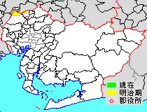 Location of former Haguri-gun, Aichi Prefecture, highlighted in yellow.