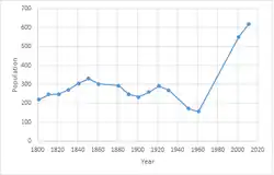 In 1881 the majority of jobs in Haile were in the agricultural sector, having a total of around 70 people out of 266 people in work.[6] There was a high number of unknown occupations for women. Also, during this time the majority of workers were male with 183/266 out of the total workforce. However, comparing the occupations to the 2011 census shows the change in equality in terms of the number of people working, with 164 males and 161 female. The jobs have also shifted from the agricultural sector to the professional and public sector. In 1881, Haile only had 3 people who were known professionals, compared to 108 in 2011.[1]