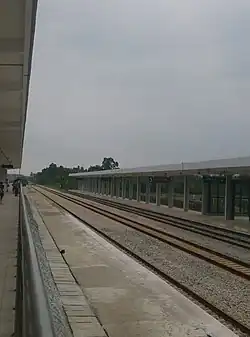 The Hainan western ring railway (Chinese: 海南西环铁路; pinyin: Hǎinán xīhuán tiělù) is a standard-gauge railway running along the coast of the western half of Hainan Island in South China. It connects the provincial capital Haikou on the island's north coast with Sanya, the major city on Hainan's south coast. The rail line is 363.8 km long; its terminals are Haikou railway station and Sanya railway station. Cargo trains enter this railway from Zhanjiang, Guangdong, at the South Port of the Guangdong–Hainan Railway.