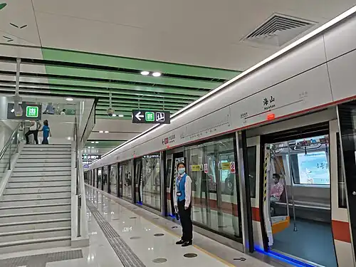 Haishan station (Chinese: 海山站; pinyin: Hǎishān Zhàn) is a station on Line 8 of the Shenzhen Metro. It opened on 28 October 2020.[1][2]