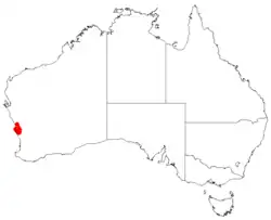 This species grows on sand, loam, and lateritic gravel in heathland from the northern sand plains at Eneabba and south to Dandaragan. It requires an open sunny aspect with good drainage.[3]