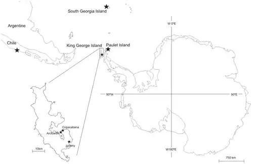 The largest individuals from South Georgia Island, Antarctica were found to consume calanoid copepods, while smaller individuals ate amphipods.[4] The greatest proportion of the food of individuals from Chile appeared to be harpacticoid copepods followed by gammarid amphipods, chironomid fly larvae and podocopid ostracods. The remainder of the diet included empidid fly larvae, polychaete worms, isopods, juvenile decapod crustaceans and gastropods. Smaller adult individuals from the Chile population appeared to eat mostly copepods, while larger animals ate mostly amphipods.[5]