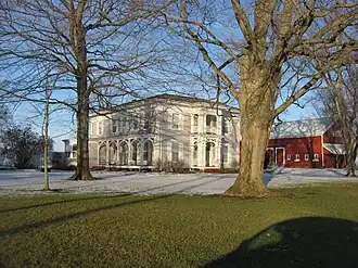 Hall Farm is a historic home and farm located in Prairie Township, Kosciusko County, Indiana. The house was built in 1871, and is a two-story, three-bay, Italianate style frame dwelling. It is topped by a low pitched hipped roof. The front facade features a two-story, one-bay portico with elaborate brackets and scrollwork. Also on the property is a contributing timber frame English barn (c. 1871).[2]: 5