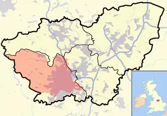 The exact boundaries of this historic district are unknown, but it is thought to have covered the parishes of Sheffield, Ecclesfield, and Bradfield — an area roughly equivalent to those parts of the present-day borough of the City of Sheffield that lie to the west of the rivers Don and Sheaf that are within the boundaries of the ancient county of Yorkshire (later descriptions also include Brightside and the parish of Handsworth).[3]