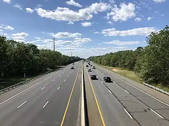 The western three-quarters of the township is governed by regulation by the New Jersey Pinelands Commission, which places major limitations on development in that portion of the township, which remains as pine forest with a distinctly rural character, with other portions designated as a Rural Development Area.[37] Significant portions of the eastern quarter of the township are designated by the Pinelands Commission as part of the Regional Growth Area (RGA), in which development is "allowed and encouraged" in the area surrounding Atlantic City, New Jersey.[38] The majority of the township's residents live in the area covered by the RGA, which has been developed in suburban fashion and includes shopping areas such as the Hamilton Mall, part of the township's 3,000,000 square feet (280,000 m2) of first class commercial retail properties.[20][39]