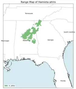 This species is endemic to the U.S. states of Georgia, Alabama, and Tennessee. It is a threatened species in the United States.