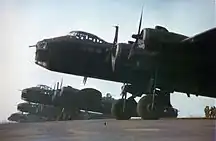 Mahaddie's final assignment during the war came 24 July 1944 when he was made Officer Commanding at RAF Warboys, the airfield that was home for the Pathfinder Force Training Unit.[5][16] He took over the command from Group Captain J. H. Searby, a pilot whom Mahaddie had earlier recruited to the Pathfinder Force, famous for being the Master Bomber on the Peenemünde raid.[17] The unit trained aircrew on the Avro Lancaster and the de Havilland Mosquito. Mahaddie was again Mentioned in Despatches on 1 January 1945.[2] The last wartime sortie he flew was in leading a flight of 60 Lancasters to repatriate RAF PoWs held at Lübeck.[3]