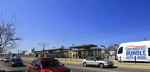 Hamline Avenue station is a light rail station on the Metro Green Line in Saint Paul, Minnesota. It is located along University Avenue on both sides of the intersection with Hamline Avenue. The station has split side platforms, with the westbound platform on the north side of the tracks west of Hamline and the eastbound platform on the south side of the tracks east of the intersection.[2]
