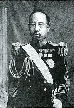 After the proclamation of the Korean Empire, Han served within various political posts. On 15 February 1902, Han was appointed as Minister of Law.[4] On 27 August 1905, Han was appointed as the prime minister,[5][6] and Lieutenant General of the army on 8 November 1905.[7] As the prime minister of Korea, Han was firmly opposed the Eulsa Treaty.[1] Initially all of the ministers were against signing the treaty. Pak Chesoon, who was the Minister of Foreign Affairs, declared that he would rather commit suicide if Japan forced him to sign the treaty. However, when Han was locked in a closet at Jungmyeongjeon by Japanese troops and under threat of execution, the remaining ministers fearing similar treatment, signed the treaty. Ye Wanyong, Yi Ji-yong, and Gwon Jung-hyeon were the first to change their stance. After the Eulsa treaty was signed, Han made several attempts to annul the treaty but lacked the political power to do so, as he was previously dismissed from the position as prime minister.[8] After the treaty of 1905 was signed, Han, as well as Five Eulsa Traitors, were the target of public resentment. Choe Ik-hyeon wrote that Han was at great fault for the ratification of the treaty.[9]