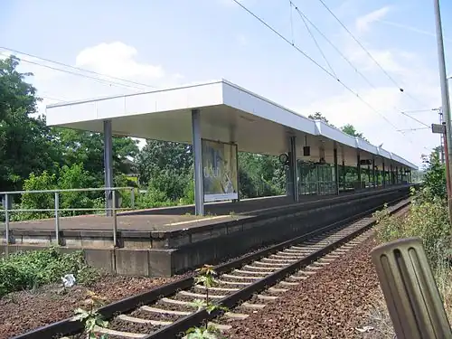 Hanau West station is the oldest station in the city of Hanau in the German state of Hesse. It was opened in 1848 and is located on the 17.9 kilometre mark of the Frankfurt Süd–Aschaffenburg railway. Operationally, since the 1970s it has been classified as a Haltepunkt ("halt"). The station is classified by Deutsche Bahn (DB) as a category 5 station.[1]