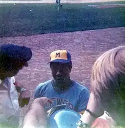 At the end of the season, Aaron, who had a prior relationship with Brewers owner Bud Selig, requested a trade to Milwaukee. He was acquired by the Milwaukee Brewers for Dave May thirty-one days later on November 2.[67] Minor league right-handed pitcher Roger Alexander was sent to the Braves to complete the transaction at the Winter Meetings one month later on December 2.[68] The trade re-united Aaron with former teammate Del Crandall, who was now managing the Brewers.[67] He signed a two-year contract with the Brewers for $240,000 per year.[69] Playing in the American League allowed Aaron to serve as a designated hitter rather than play in the field.[70]