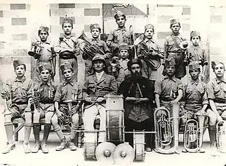 Hanna Petros was an ethnic Assyrian, born to a Chaldean Catholic family in Mosul in 1896.[1] After finishing preparatory school, he studied oriental music at the hands of an Ottoman army officer from 1914 to 1918 and was shortly employed at the Ottoman military band in 1918.[2] He subsequently worked as an instructor for scouting groups in Mosul in 1921, where he would also compose an anthem for the city.[3] Later in 1924, he was asked to compose music for the Iraqi army's marching bands,[4] and the following year, he would begin teaching music in Baghdad.[2]